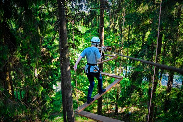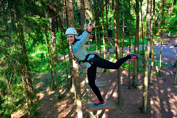 В парке вас ждет 4 уровня с заданиями на высоте от 1,5 до 20 метров. На трассы допускаются гости возрастом от 5 лет и старше. Полоса препятствий оснащена троллями, сетками, канатами, деревянными брусьями, паутинками, скалодромом. Все задания спроектированы так, чтобы вы с ними справились, но если какие-то из них покажутся сложными у нас есть легкий путь для обхода.