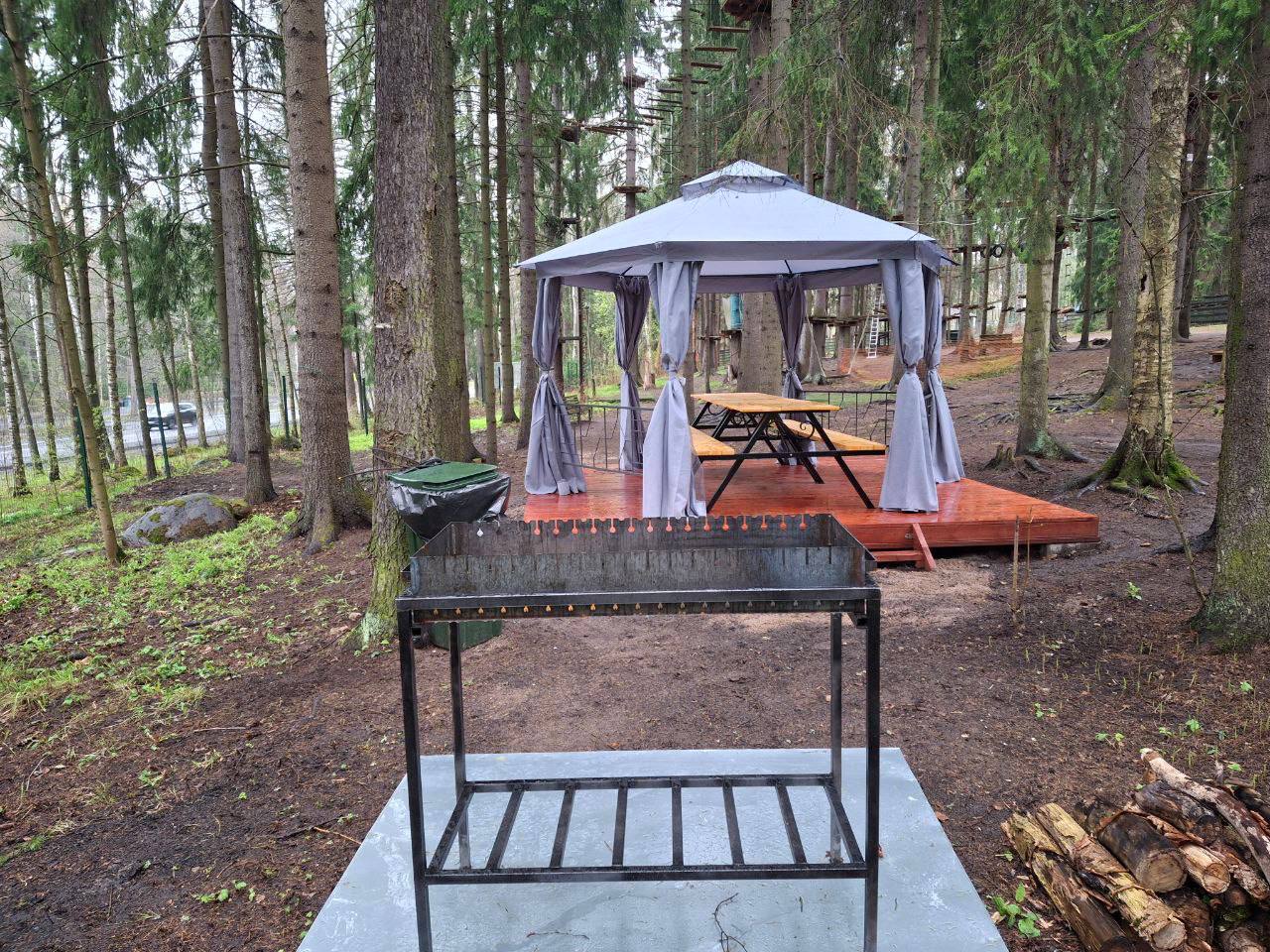 В мини-шатре есть кованый мангал, уголь и розжиг (доплачивать за них не нужно – все включено в стоимость). Нет никакой необходимости ездить по городу в поисках решетки или шампуров – все это вы можете купить в парке. В маленьких шатрах также имеется электричество, предоставим все необходимое звуковое и световое оборудование – не забудьте свою любимую музыку!