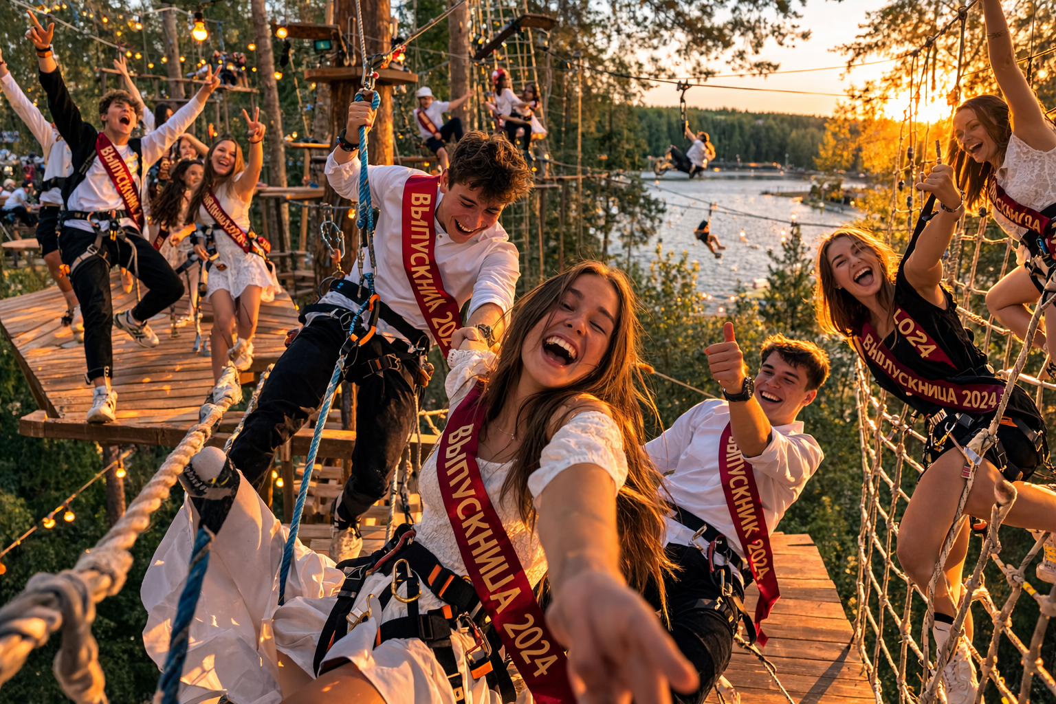 Одним из лучших мест для проведения выпускного для класса в Санкт-Петербурге является веревочный парк Tree To Tree Репино.